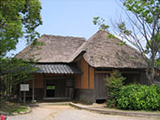 この民家は約200年前に建てられたもので、入口から右へ「にわ」(土間)、「ごぜん」(中居)、「納戸」が横一列に続き、納戸の前方に座敷が張り出しています。天井は総て竹簀子天井で、特に納戸の竹簀子天井に土を塗籠(大和天井)にしているのが特徴です。移築当時小郡市に残っていた最古の鉤屋造り民家です。