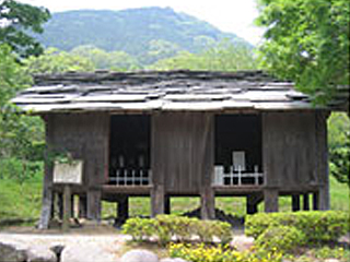 くど造り民家は今でも佐賀平野を中心に点在しますが、旧藩時代の徹底した倹約令、梁間の制限が大きな要因で家屋が小さいのが通常ですが、ここに移築した家屋はかなり大きな建物です。中央部分に式台(玄関)があり、約150年前に上層階級の家として建てられたものだといわれています。
