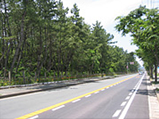 海岸の手前には美しい松林が、福間海岸から続いています。 『九州の鎌倉』と呼ばれるこの松林には、昔は沢山のキツネが住んでいたそうです。『又ぜーさんとお三キツネ』という、この海岸に伝わる昔話で育った村の人々が、決してキツネを捕らえて殺すことがなかったからだそうです。