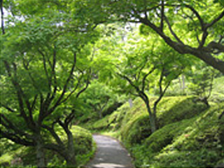 登り始めは、桜やもみじ、ツツジなどが広がる遊歩道です。 四季の移ろいを感じながら、進んでいくと、途中から次第に上り坂になっていきます。