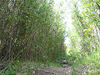 しばらく進むと、最初の遊歩道と違い、かなり急斜が続きます。 光がわずかしか届かないような暗い山道を、まるで神々の住まう地に進んでいくようなそんな感じがします。階段あり、竹薮ありの道を登っていくと、急に視界が開けます。